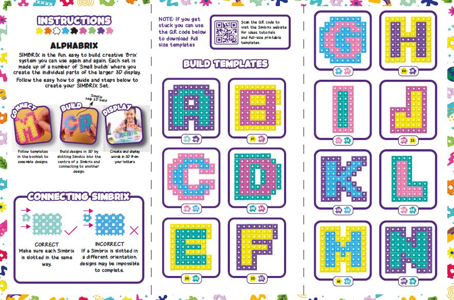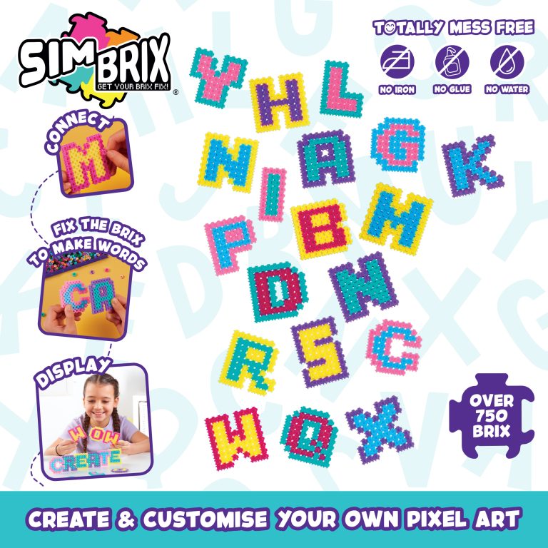 Build and display Alphabrix to spell out up to five letter words using a range of bold and colourful combinations. It’s as easy as ABC! Includes 350+ Brix to make at least 5 letters.