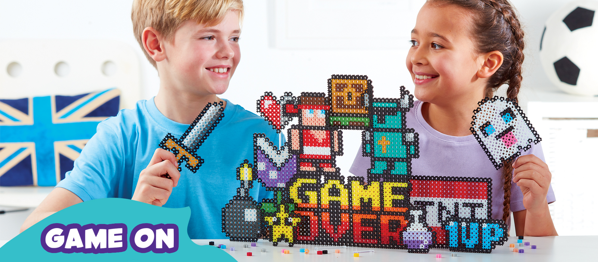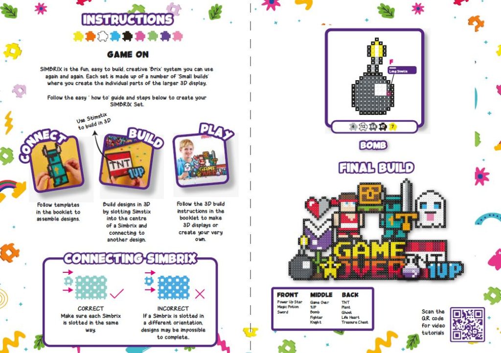 Are you ready Player One? Take gaming to the edge with this 8-but inspired world of classic arcade gaming icons. Karate kick your way to power ups, bonus health potions and weapons. Be careful to avoid ghosts, pesky plants, evil knights and bouncing bombs or it’s…GAME OVER! With over 2500 Brix, this mega set of 13 mini builds can be combined to create a multi-coloured 3D arcade inspired display.